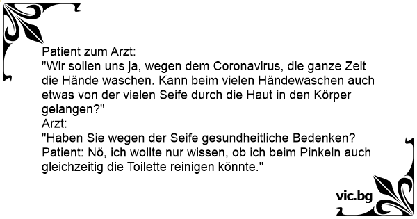 Patient: Nö, ich wollte nur wissen, ob ich beim Рinкеln auch gleichzeitig die Toilette reinigen könnte."