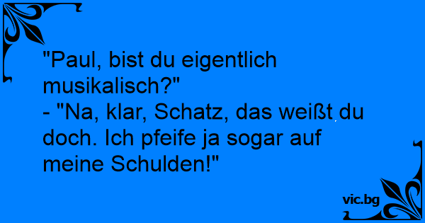 - "Na, klar, Schatz, das weißt du doch. Ich pfeife ja sogar auf meine Schulden!"