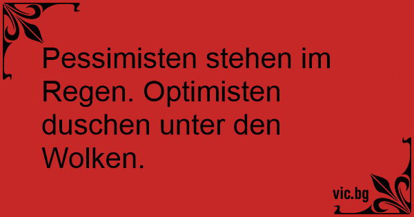 Pessimisten stehen im Regen. Optimisten duschen unter den Wolken.