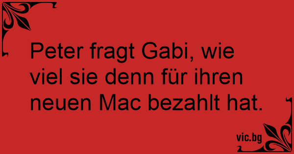Peter fragt Gabi, wie viel sie denn für ihren neuen Mac bezahlt hat.