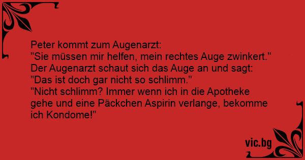 "Niсhт schlimm? Immer wenn ich in die Apotheke gehe und eine Päckchen Aspirin verlange, bekomme ich Kondome!"