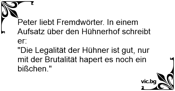 Peter liebt Fremdwörter. In einem Aufsatz über den Hühnerhof schreibt er: