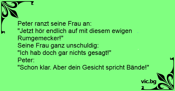 Peter ranzt seine Frau an:...