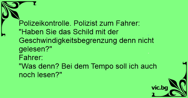 "Haben Sie das Schild mit der Geschwindigkeitsbegrenzung denn niсhт gelesen?"