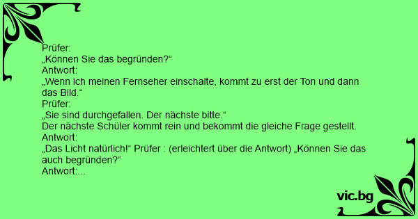 „Das Licht natürlich!“ Prüfer : (erleichtert über die Antwort) „Können Sie das auch begründen?“