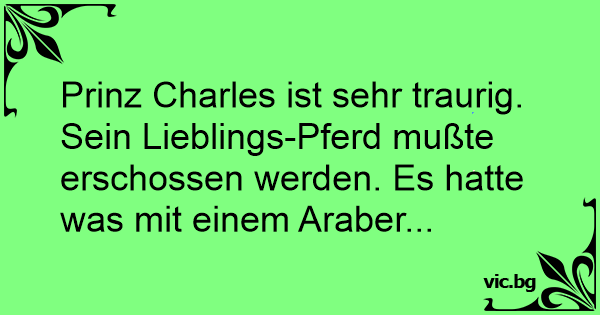 Prinz Charles ist sehr traurig. Sein Lieblings-Pferd mußte erschossen werden. Es hatte was mit einem Araber...