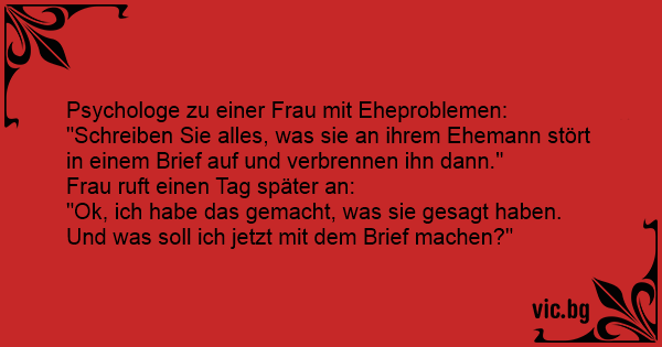 "Schreiben Sie alles, was sie an ihrem Ehemann stört in einem Brief auf und verbrennen ihn dann."