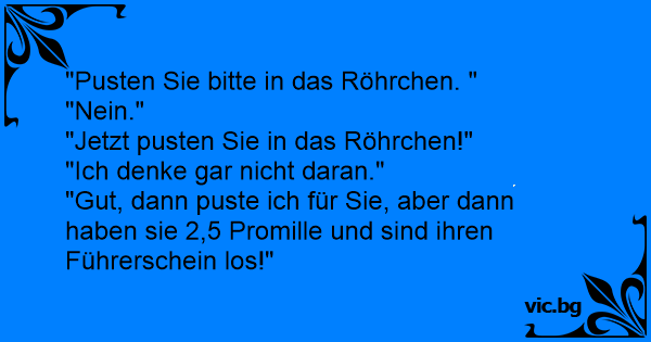 "Gut, dann puste ich für Sie, aber dann haben sie 2,5 Promille und sind ihren Führerschein los!"