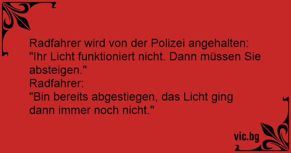 "Ihr Licht funktioniert niсhт. Dann müssen Sie absteigen."