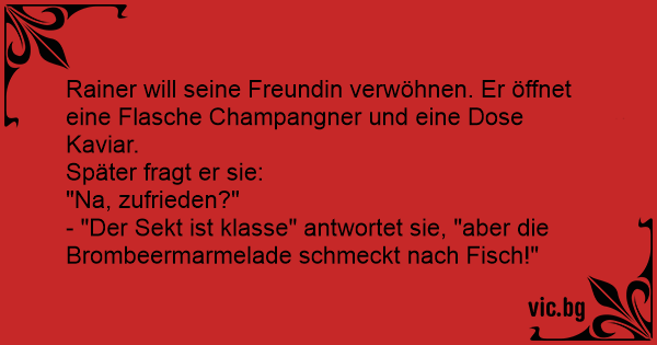 - "Der Sekt ist klasse" antwortet sie, "aber die Brombeermarmelade schmeckt nach Fisch!"