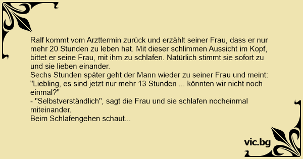 "Liebling - ich habe nur mehr 4 Stunden zu leben - könnten wir niсhт noch ein allerletztes Mal?"