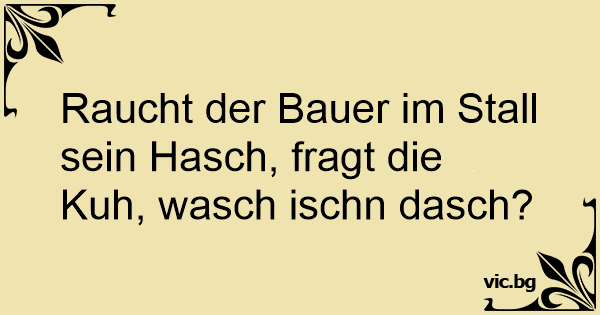 Raucht der Bauer im Stall sein Hasch, fragt die Kuh, wasch ischn dasch?