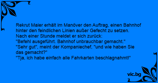 "Sehr gut", meint der Kompaniechef, "und wie haben Sie das gemacht?"