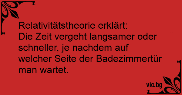 Die Zeit vergeht langsamer oder schneller, je nachdem auf welcher Seite der Badezimmertür man wartet.
