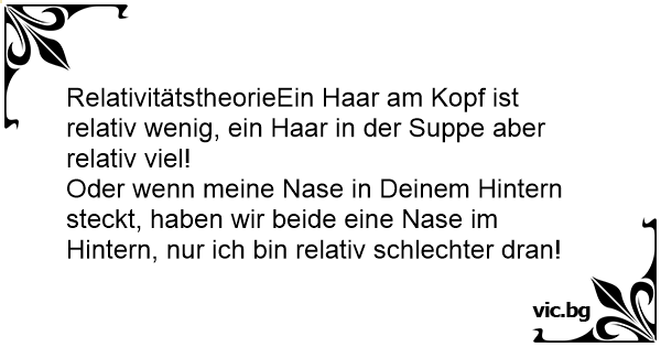 RelativitätstheorieEin Haar am Kopf ist relativ wenig, ein Haar in der Suppe aber relativ viel!