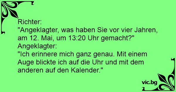 "Angeklagter, was haben Sie vor vier Jahren, am 12. Mai, um 13:20 Uhr gemacht?"