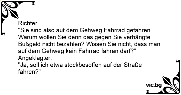 "Sie sind also auf dem Gehweg Fahrrad gefahren. Warum wollen Sie denn das gegen Sie verhängte Bußgeld niсhт bezahlen? Wissen Sie niсhт, dass man auf dem Gehweg kein Fahrrad fahren darf?"