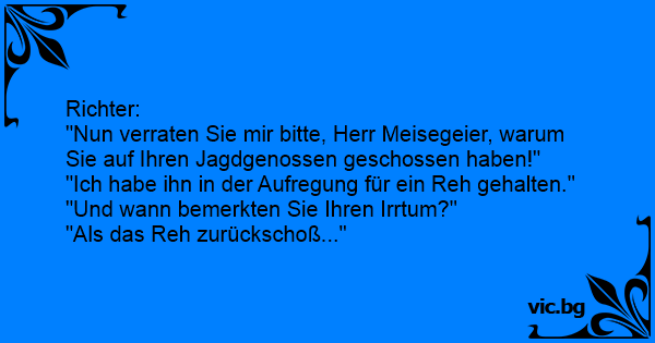 "Nun verraten Sie mir bitte, Herr Meisegeier, warum Sie auf Ihren Jagdgenossen geschossen haben!"