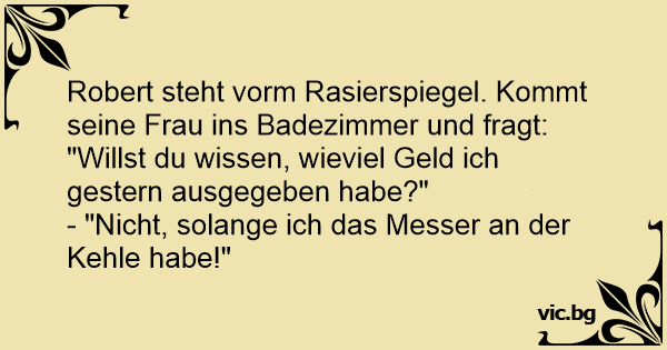 Robert steht vorm Rasierspiegel. Kommt seine Frau ins Badezimmer und fragt: