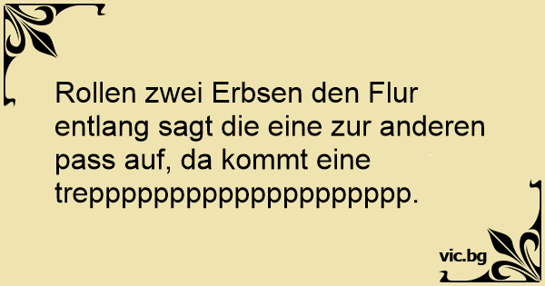 Rollen zwei Erbsen den Flur entlang sagt die eine zur anderen pass auf, da kommt eine trepppppppppppppppppppp.