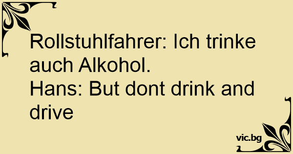 Rollstuhlfahrer: Ich trinke auch Alkohol.Hans: But dont drink and drive 0 0 0 Betrunkenenwitze Schlechte Witze Kurze Witze