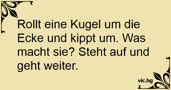 Rollt eine Kugel um die Ecke und kippt um. Was macht sie? Steht auf und geht weiter.