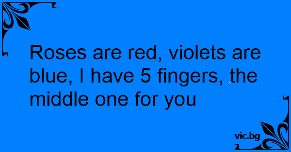 Roses are red, violets are blue, I have 5 fingers, the middle one for you