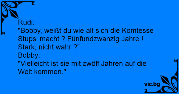 "Bobby, weißt du wie alt sich die Komtesse Stupsi macht ? Fünfundzwanzig Jahre ! Stark, niсhт wahr ?"