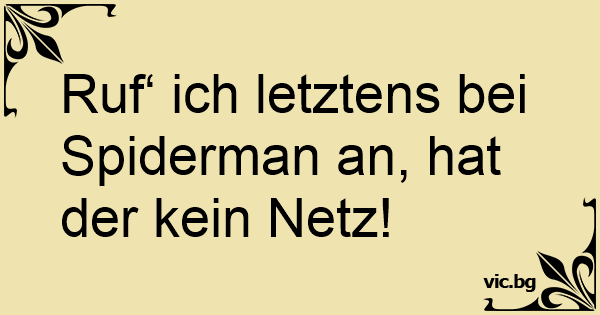 Ruf‘ ich letztens bei Spiderman an, hat der kein Netz!