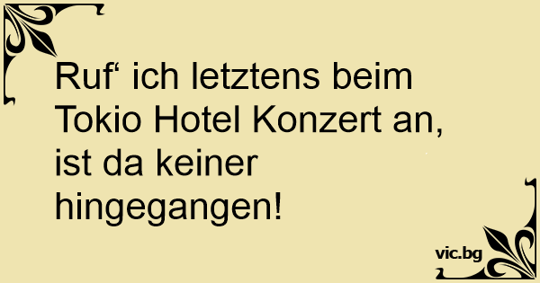 Ruf‘ ich letztens beim Tokio Hotel Konzert an, ist da keiner hingegangen!