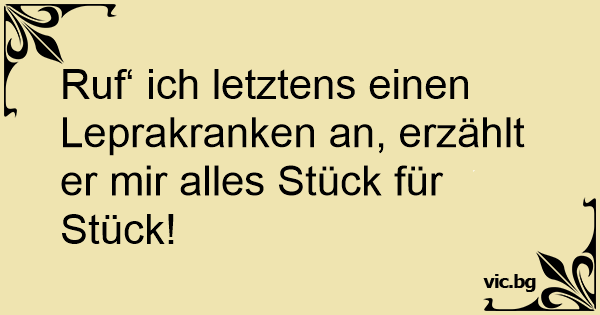 Ruf‘ ich letztens einen Leprakranken an, erzählt er mir alles Stück für Stück!