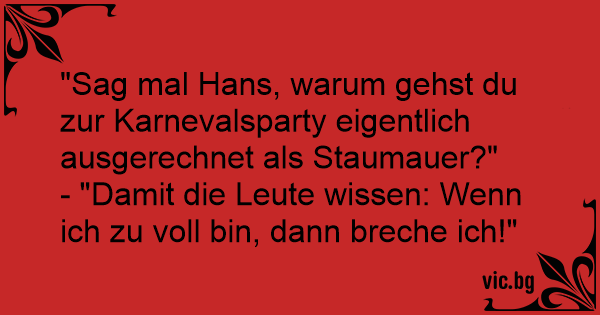"Sag mal Hans, warum gehst du zur Karnevalsparty eigentlich ausgerechnet als Staumauer?"