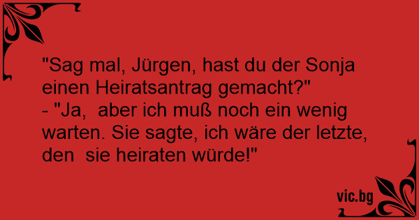 "Sag mal, Jürgen, hast du der Sonja einen Heiratsantrag gemacht?"