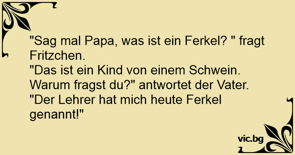 "Sag mal Papa, was ist ein Ferkel? " fragt Fritzchen.
