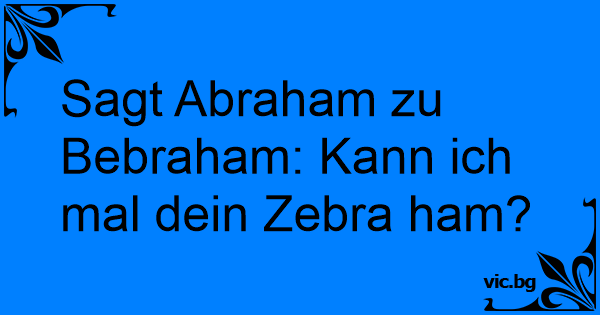 Sagt Abraham zu Bebraham: Kann ich mal dein Zebra ham?