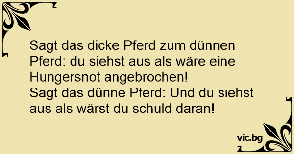 Sagt das dicke Pferd zum dünnen Pferd: du siehst aus als wäre eine Hungersnot angebrochen!
