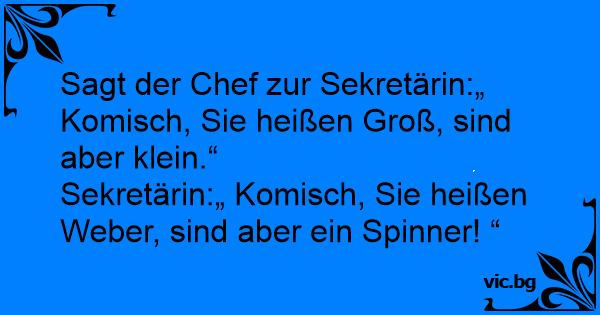 Sagt der Chef zur Sekretärin:„ Komisch, Sie heißen Groß, sind aber klein.“