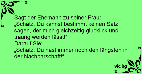 „Schatz, Du kannst bestimmt keinen Satz sagen, der mich gleichzeitig glücklick und traurig werden lässt!“