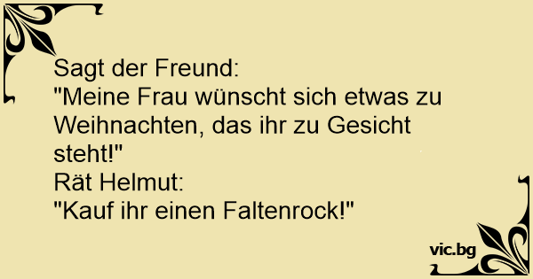 "Meine Frau wünscht sich etwas zu Weihnachten, das ihr zu Gesicht steht!"