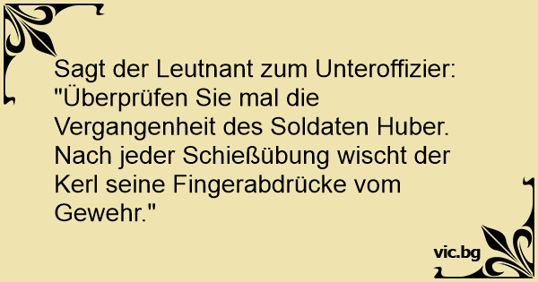 "Überprüfen Sie mal die Vergangenheit des Soldaten Huber. Nach jeder Schießübung wischt der Kerl seine Fingerabdrücke vom Gewehr."