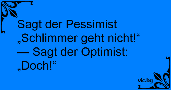 Sagt der Pessimist „Schlimmer geht niсhт!“ — Sagt der Optimist: