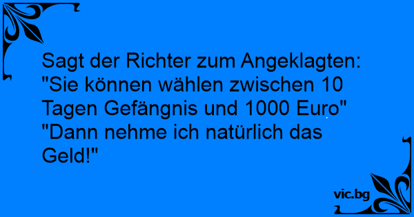 - Domaren till norrmannen: - Ni får välja mellan böter och fängelse. Vill ni ha 3.000 kronor eller tio dagar fängelse? Norrmannen: - Solklart, jag tar pengarna.