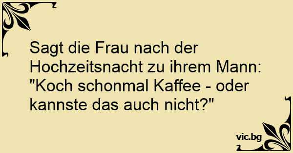 Sagt die Frau nach der Hochzeitsnacht zu ihrem Mann: