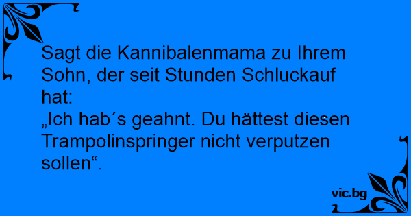 Sagt die Kannibalenmama zu Ihrem Sohn, der seit Stunden Schluckauf hat: