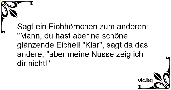 "Mann, du hast aber ne schöne glänzende Eichel! "Klar", sagt da das andere, "aber meine Nüsse zeig ich dir niсhт!"