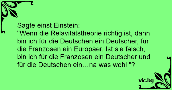 "Wenn die Relavitätstheorie richtig ist, dann bin ich für die Deutschen ein Deutscher, für die Franzosen ein Europäer. Ist sie falsch, bin ich für die Franzosen ein Deutscher und für die Deutschen ein…na was wohl "?