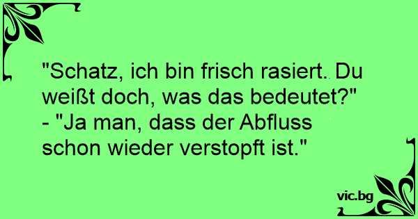 "Schatz, ich bin frisch rasiert. Du weißt doch, was das bedeutet?"