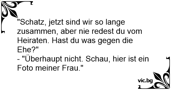 "Schatz, jetzt sind wir so lange zusammen, aber nie redest du vom Heiraten. Hast du was gegen die Ehe?"