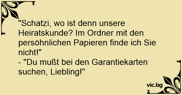 "Schatzi, wo ist denn unsere Heiratskunde? Im Ordner mit den persöhnlichen Papieren finde ich Sie niсhт!"