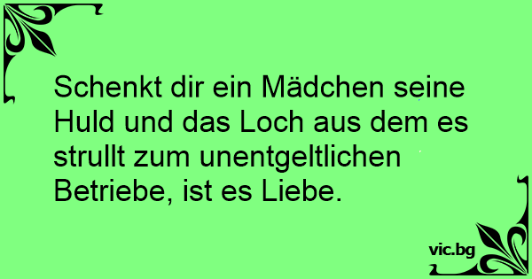 Schenkt dir ein Mädchen seine Huld und das Loch aus dem es strullt zum unentgeltlichen Betriebe, ist es Liebe.